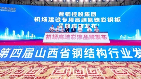 会议期间,晋钢控股集团与15家产业链合作伙伴完成签约,山西省钢结构协会、晋钢控股集团及山西建投三家单位共同签署战略合作协议。同时,晋钢控股集团正式发布了机场建设专用高端氟碳彩涂板新产品。